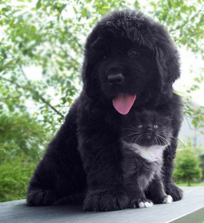 Щенок ньюфаундленда и просто котенок...