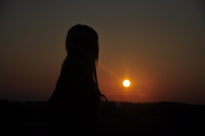 красивый силуэт вышел на закате