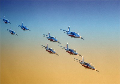 Эх вы! Это французская пилотажная группа "Patrouille de France" на самолетах Альфа Джет.