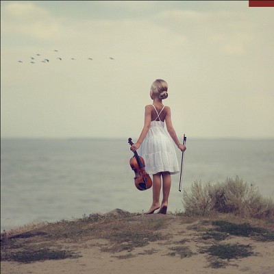 Удачно все сложилось, девочка, скрипка, улетающие птицы ...