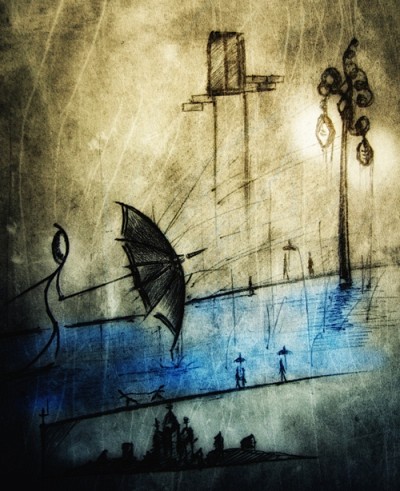 прогулка под дождем...в мерцании фонарика...