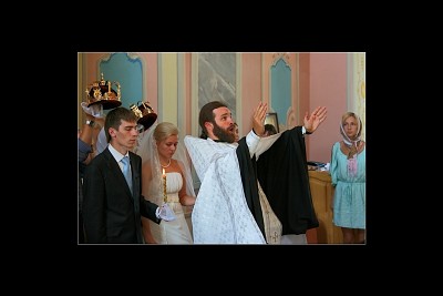 Удивительное фото, несущее много информации, и эмоционально насыщенное. Давно замечала, что по фотоработам Леонида Левоновича можно сочинения писать – настолько они богаты мыслью и чувством. Здесь - столько действующих лиц, и у каждого своё состояние, но всех объединяет настроение Торжества, и всё искренне, всерьёз… Батюшка – это порыв, настоящая пламенная молитва о благословении этого брака. Жених – сосредоточен. Невеста – тоже вся поглощена совершающимся Таинством, хотя и утомлена от стояния, от предсвадебных хлопот… Девушка у окна всей душой тоже участвует в Таинстве… Цвета одежд преимущественно черно-белой гаммы, и чёрный цвет портфолио только усиливает контраст, и желто-розовые стены смотрятся наряднее.