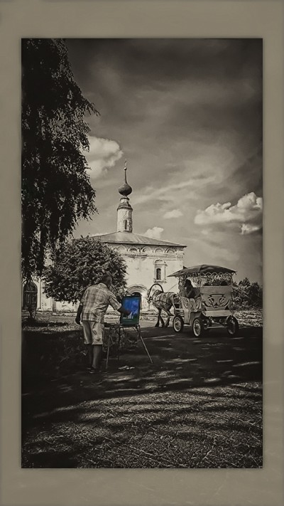 Нравится! В первое мгновение воспринимается как человек с ноотбуком в позапрошлом веке. Тоже идея интересная...  А потом уж понимаешь - картину пишет... И, как у фотографов, - в результате мир более цветной, чем обычно...