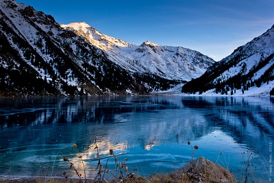Большое Алма-атинское Озеро, вдали пик Советов. Казахстан