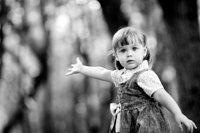 Девочка увидела белку в парке)