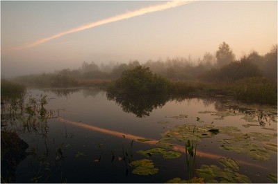 Помимо всей прелести туманного августновского утра особенно нравится характерная выпуклость листьев кувшинок (вот под ними и притаилась рыба