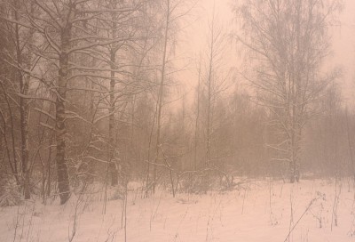 Метель ...Метель началась внезапно и я, уже основательно продрогший, укрылся от нее под раскидистыми лапами огромной ели. Неожиданно с одной из них, на невидимой на фоне снега паутинке, к моему лицу спустился маленький паучок. Почувствовав исходящее от человека тепло, он очевидно предположил, что весна уже не за горами. Я отодвинулся в сторону и паучок опустился на снег. Он нерешительно ползал по нему в разных направлениях в поисках нечаянно исчезнувшего тепла... Наверное мы с ним были большими романтиками. Он зимой искал несуществующую весну, а я стоял и смотрел на падающий снег, вспоминал теплый домашний очаг, до которого не один час ходу, и прекрасную музыку Свиридова к одноименному фильму. И очень скоро окружающий мир из угрюмого и холодного превратился в розовый и теплый... |