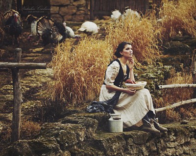 художественно, красиво. но кое что тут вы приврали. у наших деревенских не такие новые ботинки с белыми шнурками и белым мехом, и профессиональный макияж там редко встречается. или это новогдний наряд