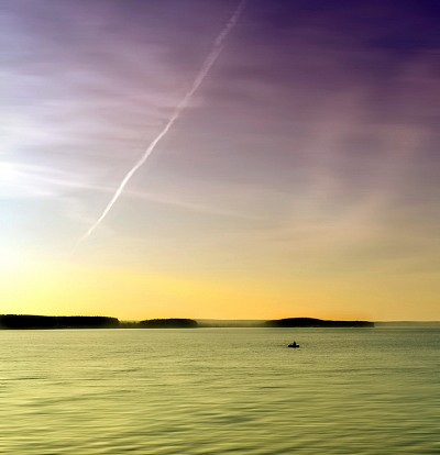 Есть подозрение, что автоматика камеры ошиблась с балансом белого. Если снимали в RAW, то можно исправить. У меня пару раз получался зеленый цвет воды и облаков при съемке закатов, когда камера считала, что люминесцентное освещение.