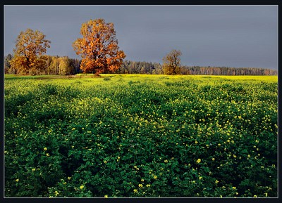 По-моему, все-таки переборщили с Hue/Saturation для неба... А вообще синие оттенки лучше всего контрастировали с ярко-желтыми цветками рапса... Лично мне больше всего нравится осеннее дерево... дуб, насколько я понимаю... мое любимое дерево... высказался...