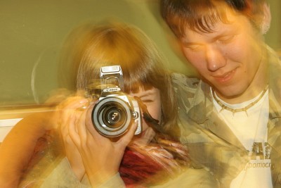 Мда, длительная выдержка даёт такой эффект. Особенно интересно меняется цвет волос. Сама камера вырывается из общего вида :( , слишком уж свет от выспышки отразила.