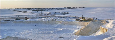 Как добывают мел... Карьер Заречанка можно сказать только начали разрабатывать. в правом углу кадра видны вскрышные породы (пески и супеси) мощностью всего 1,5-2,0 метра. Глубже уже залегает мел. Окрестности Гродно |