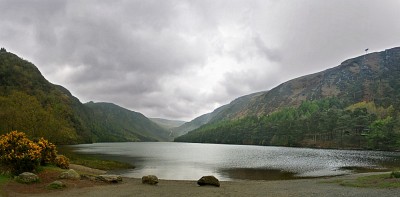 Горное озеро Глендалох - местечко в Ирландии, недалеко от Дублина. Здесь есть два очень живописных озера и остатки старого средневекового монастыря. К сожалению, погода была не просто пасмурная, а ужасная:( Панорама из 4-х вертикальных кадров |
