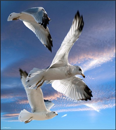 Three seagulls in flight