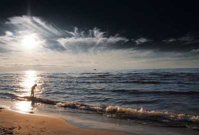 четкий силуэт судна на горизонте и воздушный ребенок на пп - контраст отменный!