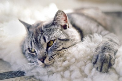 этот угол следовало бы тоже размыть, предварительно "заделав" мехом, на котором кот лежит, тогда всё внимание досталось бы котику.