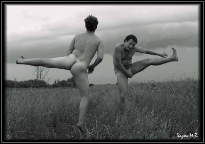 голым женщинам можно танцевать, а мужикам... Да ради Бога!Тем более, как похоже на снимке, танцор всеми силами пытается устранить помеху, не позволяющую раскрыться его таланту танцовщика в полной мере. |