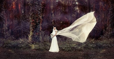 Красивая картинка - воздушная. Лёгкость и воздушность вуали конфликтует с жёстким и насыщеным фоном - это делает фото очень динамичным и интересным