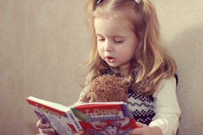 девочка книжка мишка