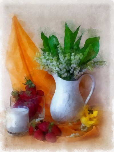 натюрморт с клубникой и ландышами