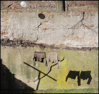 AvSky, Здесь работает не одна диагональ, раскол в стене вместе с тенью от палки создают подобие с тенью от дерева (еще одна диагональ), ствол обрезанного дерева и трубы рядом также подобны , есть о чем подумать... А квадрат придает статичность и равновесие всему, на мой взгляд... Не умею писать, говорить легче бы получилось