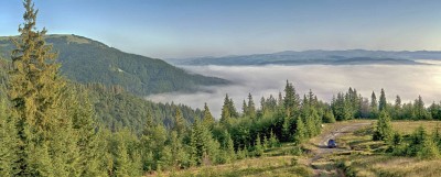 Только поднялось солнце, высота немногим более 1100 метров, внизу туман...