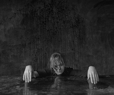 а остальное не понятно, мастерская чего?, отчего отчаяние или безысходность?, кровь или краска на столе стене?, почему мокрые волосы? ...и т. д. Не хватает предмета (например), который бы объединил мысль автора