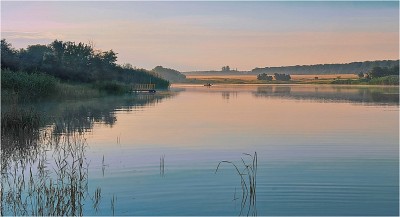 На зорьке 2... Из далекого июля...Несколько минут назад взошло солнце, легкая дымка, пар над водой возле камышей, лодка с рыбаками...Было жаркое лето, еще довоенное, даже на рассвете было уже жарко...Умиротворение... |