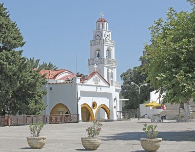 монастырь Св Богоматери Цамбика. http://rasfokus.ru/upload/comments/1fba05de86f9c2a763f7354098ef86e6.jpgОдно из самых известных мест Родоса - монастырь Богоматери Цамбика. Чудотворная икона появилась на горе Цамбика (от названия горы стали называть и икону) в ХV веке. Яркий свет на горе заметил один из жителей расположенной неподалеку деревни Архангелос.http://www.nsad.ru/articles/pravoslavnyj-rodos-chudotvornaya-ikona-missionerskij-monastyr-i-bibliya- монастырского комплекса построены в соответствии с додеканесским типом религиозных построек. Церковь, крыша которой покрыта красной черепицей, имеет одно помещение. Внутри церковь отличает богато украшенный иконостас, выполненный из дерева. На стенах – иконы, которые датированы XIX веком. Пол и в самой церкви, и во дворе выложен морской галькой черного и белого цветов (хохлаки). Рядом с главным входом расположена 5 – ярусная белоснежная колокольня с часами. http://www.ayda.ru/greece/lindos/places/church-tsambika-rhodes-10262 |