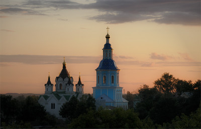 В вечернем свете Церковь Рождества Христова является венцом храмостроительства г.Арзамаса и построена по проекту знаменитого русского архитектора Константина Тона, автора проекта Храма Христа Спасителя в Москве. Церковь построена в 1845-1852гг. Отреставрирована в последние годы с некоторым и упрощениями в оформлении фасадов. |