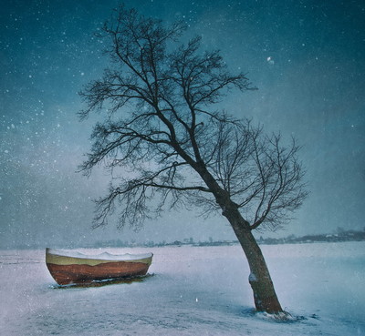 Всё реальное)) хоть и снег валил в тот момент,но добавил в фотошопе)Это берег Невы,за лодкой обрыв начинается)Спасибо за визит.
