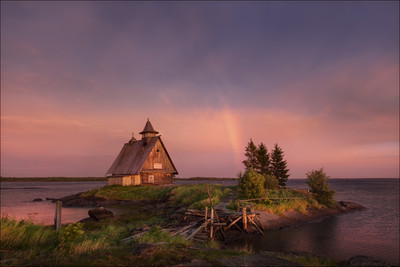 / После грозы / Карелия, Рабочеостровск. Август 2015 г. В день моего приезда сильно изменилась погода, перестали ходить теплоходы на Соловки, объявлено штормовое предупреждение. Как выяснилось, волна на море была до 5,5 — 6 метров. Погода была совершенно не съемочная, ветер в прямом смысле сдувал с ног. Но ближе к 7 часам вечера ветер начал немного стихать, дождь прекратился. А примерно в 19:30 небо стало слегка растягиваться от туч. А еще через час оно совершенно невероятным образом изменило цвет и появилась радуга. Вот если бы еще не автобус финнов, которые в итоге слонялись перед объективом - было бы вообще замечательно.... |
