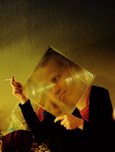 портрет с увеличивающим стеклом и сигаретой