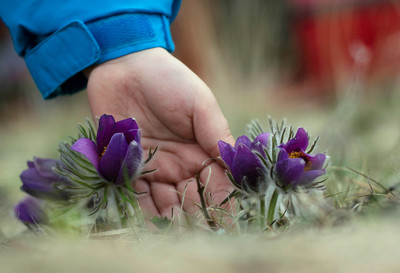 Трогательный снимок!)Рука ребёнка,защищающая первые цветы...)