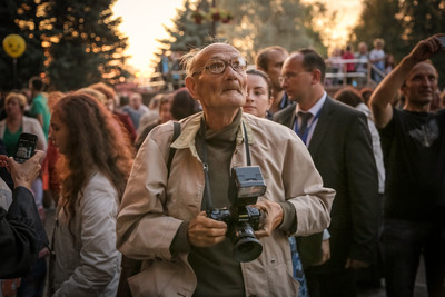 Старая школа Среди многочисленных представителей прессы и гостей праздника, в один момент мне попался на глаза этот человек. Он был так увлечен работой и объектом съемки, что не обратил на меня ни малейшего внимания за те две минуты, что я пытался получить наиболее интересный кадр. Здесь видно, с каким уважением и любовью он делает свое дело. (Открытие памятника князю-основателю города Заславль, Беларусь). |