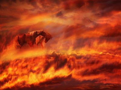 ядрёно - купание красных коней у красных облаках