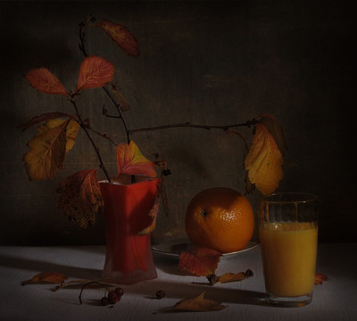 Fahrenheit 451, Цвета осени... и апельсин в самый раз подходит по цвету, вне зависимости от места происхождения... )) Чай, конечно, тоже в цвет, но с чаем у меня много натюрмортов, да апельсиновый сок здесь более в тему. ))