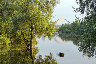 Разлив на Оби с видом на Бугринский мост. Новосибирск.