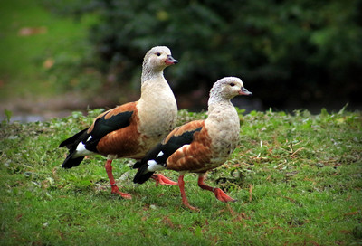 Ать два левой .. Оринокский гусь или американский древесный гусь, или гривистый гусь (лат. Neochen jubata) — вид водоплавающих птиц семейства утиных, единственный существующий в настоящее время представитель рода Neochen. Вопреки своему названию, это не гусь, а ближайший родственник пеганок (настоящие гуси в Южной Америке отсутствуют). Американский древесный гусь — довольно крупная птица длиной 61-76 см. Голова и шея у гуся светлая, бока каштановые, спина темная, крылья черные. Лапы красные, клюв чёрный. Самец и самка окрашены одинаково, молодые птицы имеют более однотонное оперение. |