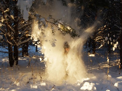 Ух ты! Там еще и человек, принимающий снежно-солнечный душ )
