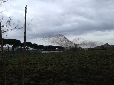 Остановились коротко, воды попить , навигатор поправить, глючил. Где-то недалеко от Рима. Январь. Вспаханное поле. Птицы взлетали. Успела заснять камерой телефона.