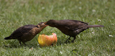 Wir füttern die WILDVÖGEL im Winter in unserem Garten. Ich konnte beobachten (und fotografieren) wie eine Amsel Mama ihren Nachwuchs fütterte.
