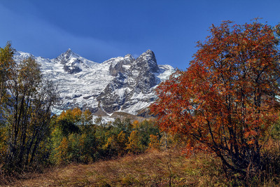 В горах желтеющий простор,