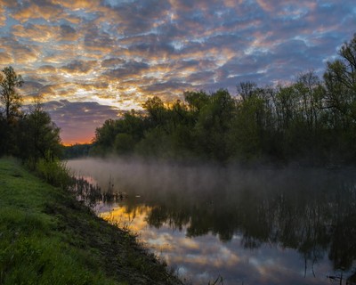 Прекрасное красочное утро на реке Псел