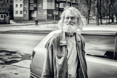 Прохожий Я приехал в маленький районный загс на съёмку торжественной регистрации. Всё прошло, как обычно, цветы, поздравления, поцелуи. Молодые выходят из дверей загса, светлые, радостные... в этот момент я оборачиваюсь и вижу этого старика, смотрящего на молодожёнов. И столько в его взгляде воспоминаний и грусти по прожитым годам... вскинул камеру и сделал 2 кадра. Надеюсь, он будет не в обиде... |
