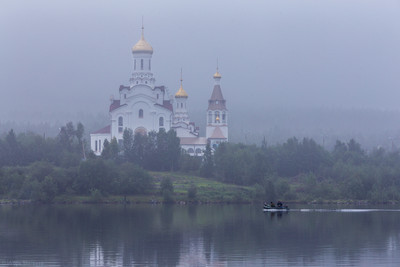 Раннее туманное летнее утро.Свято-Вознесенский кафедральный собор в г. Мончегорск