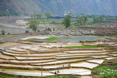 Китай Рисовые поля -снято из машины на скоростной дороге