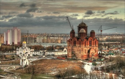 Просто настроение.. Нагромождение серых (гламурная слева не в счет) новостроек, грязные вагончики, свалка справа (ее невидно), здания (белые) прихода, миссии чего то там, к которым я всегда относился со скептицизмом, недоумением.. Огромый храм на фоне всего этого... Вот.. Спасибо )