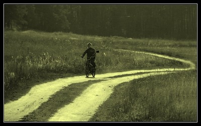 Последние теплые дни сентября. Деревенские хлопчики обкатывают мопед, не подозревая, что их гонки фиксируют на пленку (т.е на цифру). Или предложите свое название. Буду благодарен!