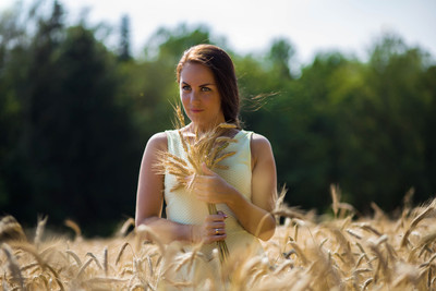 Девушка с букетом колосков